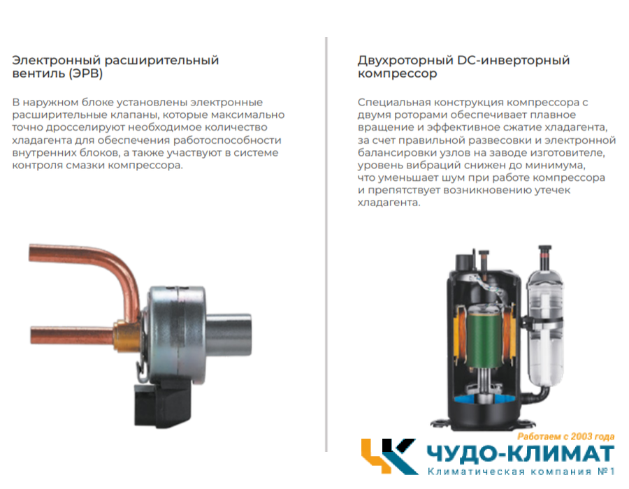 • Двухроторный DC-инверторный компрессор